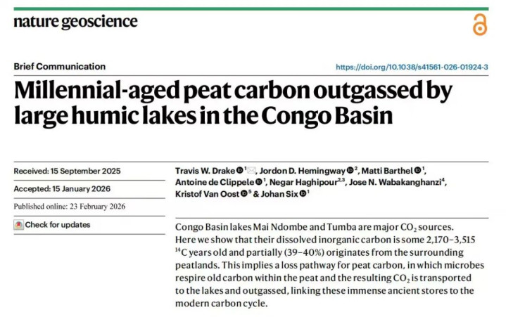 此前的酌量合计,刚果盆地泥炭中储存的碳会永久保捏料理情状,唯有在永久干旱等特定条目下才会开释出来。 现在尚不浮现未明白植物材料中的碳是怎样活化的,以及碳是怎样投入湖水的。