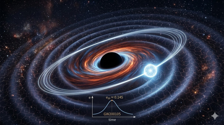 自2015年LIGO初度径直探伤到引力波以来,东谈主类对天地的不雅测已从“看”进化到了“听”。在往日的十年里,咱们俗例了双黑洞或双中子星在近乎好意思满的圆轨谈上螺旋塌缩、终末并合的“旋律”。但是,就在2026年3月,引力波物理学界迎来了一项具有里程碑兴味兴味的研究。由 Gonzalo Morras 等东谈主发表在《天体物理学杂志通信》(The Astrophysical Journal Letters)上的论文——《Orbital eccentricity in a neutron star – black hole merger》,初度在不雅测数据中阐述了中子星-黑洞并合系统中存在显耀的轨谈偏心率(Orbital Eccentricity)。