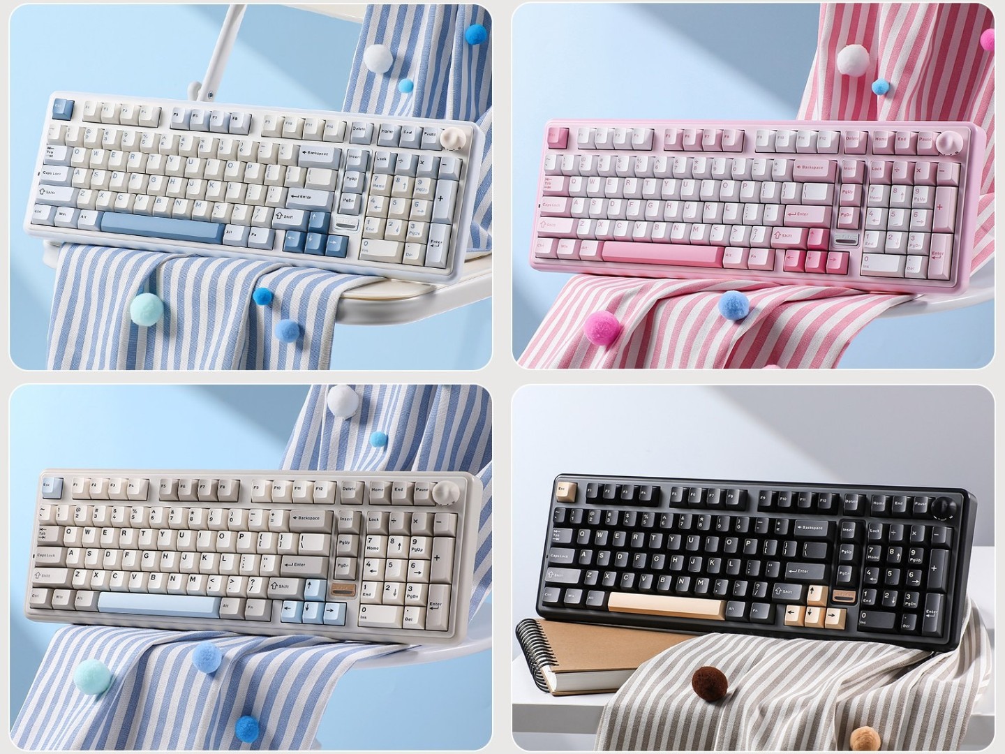 YUNZII 键设世界 B98 PRO 键盘可选拿破仑、俄罗斯蓝、玳瑁黑、玛丽咪四种配色决策;无论配色若何,椰奶 V2 轴版块售价 339 元、糖果轴版块售价 369 元。