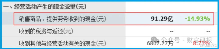 但着实让财官警醒的,是另一个数字——销售商品收到的现款总和高达91.29亿,简直朝上了营业收入。