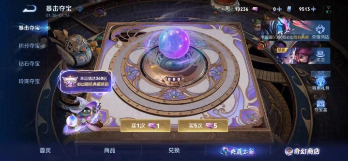 还有小数需要特等阻挠:暴击夺宝并不像积分夺宝属于常驻行径,而是限时行径,只好时候一到就会关闭。