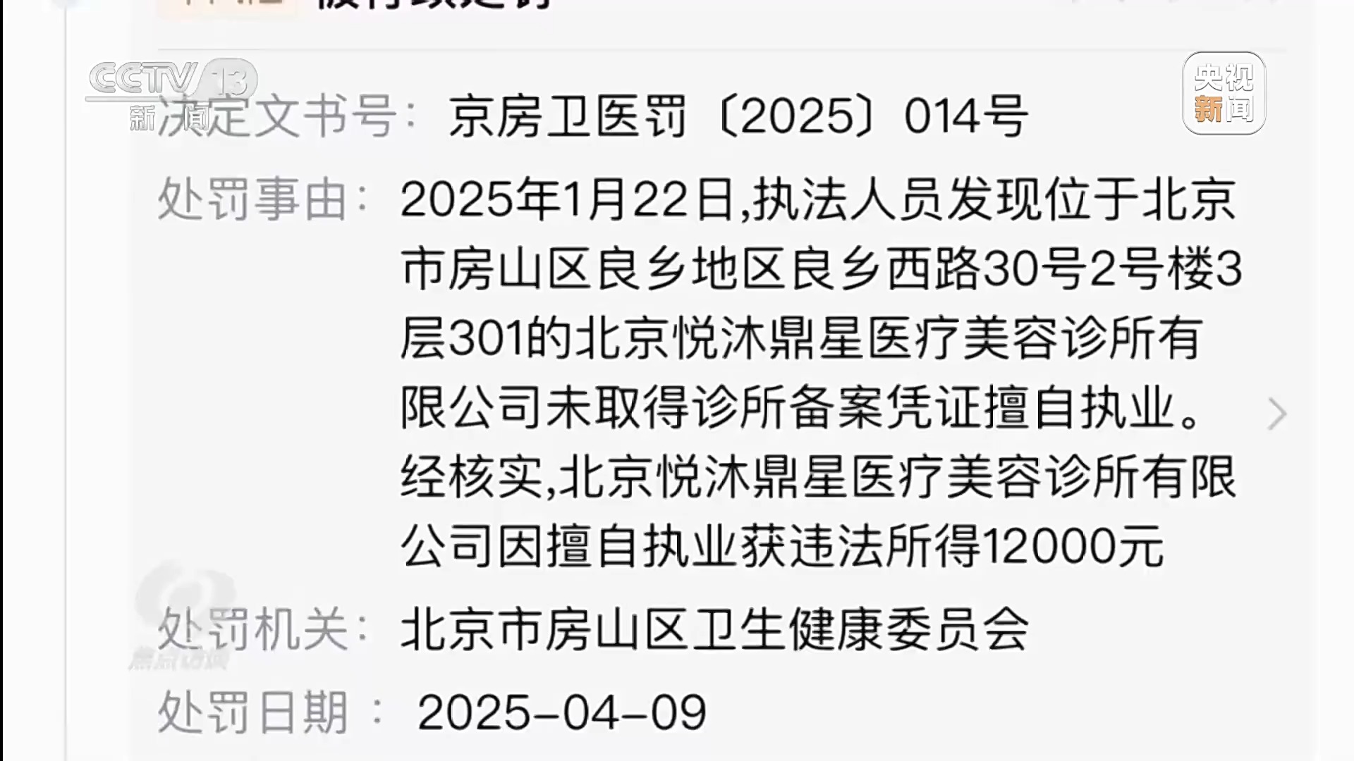 随后,记者了解到,2024年、2025年北京市房山区卫健委先后两次因“未取得医疗机构抓业许可证私行抓业”以及“未取得诊所备案凭证私行抓业”对这家公司给以行政处罚。通过查询国度卫健委的有关网站发现,直到2026年1月,这家机构一直莫得取得医疗机构许可证以及进行有关备案。看望中记者还发现,这家店的位置是在一个相比偏远街谈的二楼上,拆开易被发现,那么主顾从何而来呢?内容上,这家医好意思店一般只承袭老到东谈主保举的业务。
