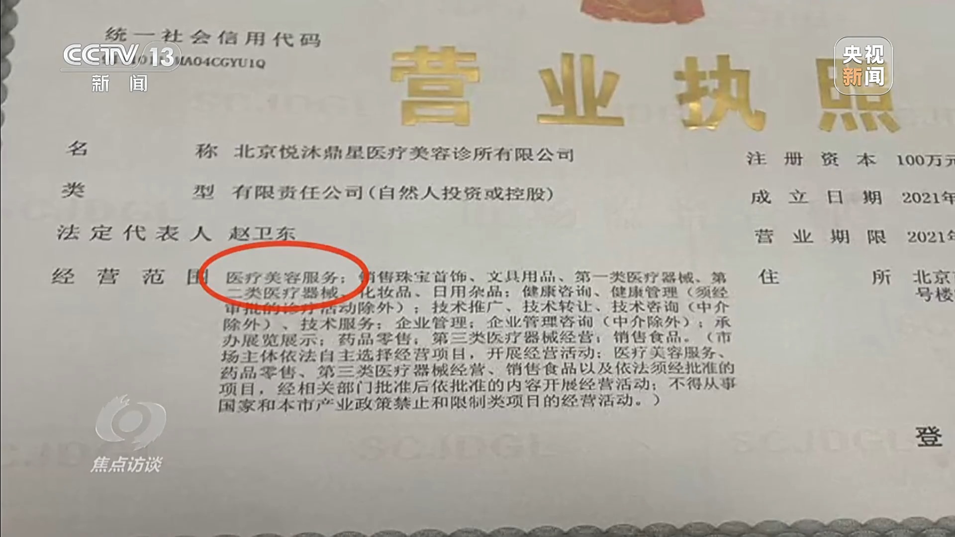 根据我国《医疗好意思容劳动经管主义》,任何单元和个东谈主未取得医疗机构许可证,不得开展医疗好意思容调抚养动。而这家医好意思机构大门口,挂着这家机构的营业派司——悦沐鼎星医疗好意思容诊所公司,霸术规模确凿包含了医疗好意思容劳动,但背面明确诠释,经有关部门批准后依批准的内容开展霸术举止。然而,机构负责东谈主一直莫得拿出正规医疗机构许可证。