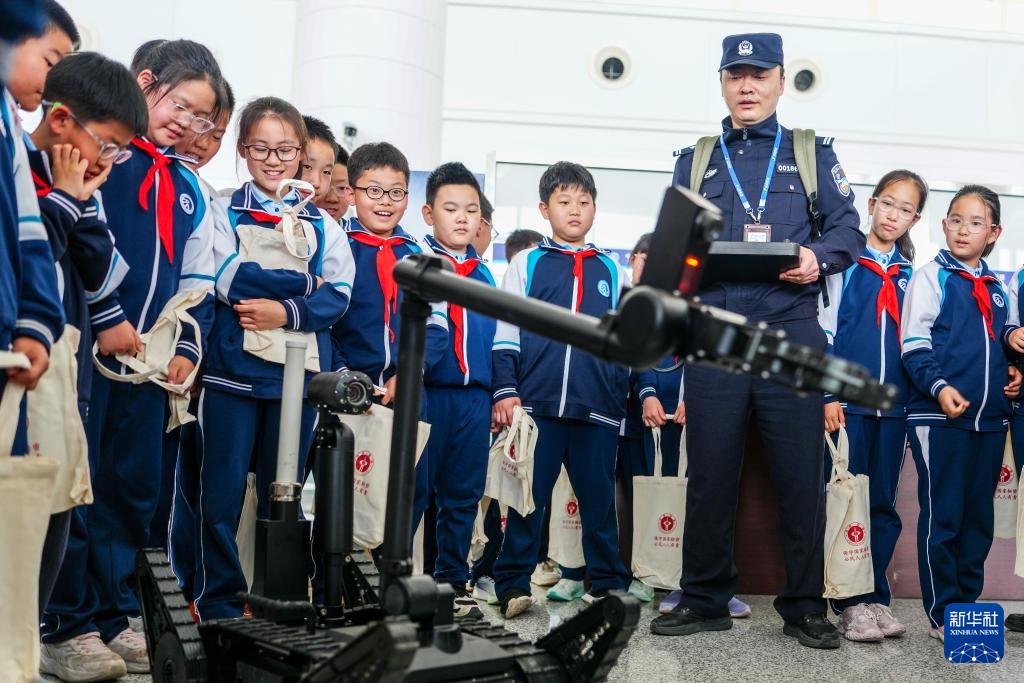 尊龙app下载济南方检站聚积济南市国度守密局、山东省公安厅机场公安局、济南国外机场,在收支境现场开展“国门一线共上国度安全解释课”主题宣传步履。山东师范大学第二从属中学50名师生代表走进边检一线接纳千里浸式解释,普及国度安全相识。 新华社记者 朱峥 摄" />
