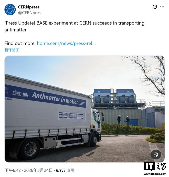 IT之家3月28日音问,科技媒体TechSpot昨日(3月27日)发布博文,报说念称欧洲核子商酌中心(CERN)的BASE团队得回环节冲破,得手将92个反质子装入重达一吨的便携式“彭宁离子阱”中,在园区内完成了史无先例的“搬家”测试。