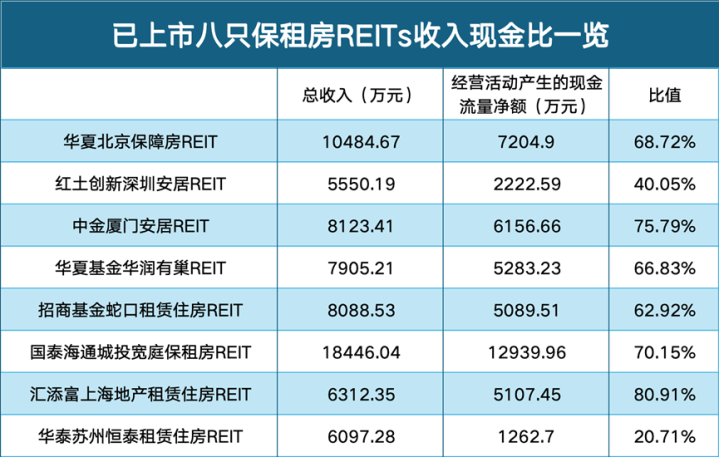 再看几位“老前辈”,中金厦门安堵REIT、国泰海通城投宽庭保租房REIT,这个比值王人特出70%,其他同业也大多在60%以上。