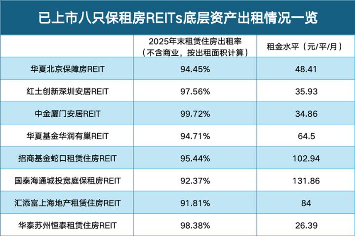 不外,从房钱水平来看,受计谋及区位身分拘谨,期内菁英公寓租赁住房房钱单价仅为26.39元/月/平素米,在已上市的8只保租房公募REITs中,处于较低水平。