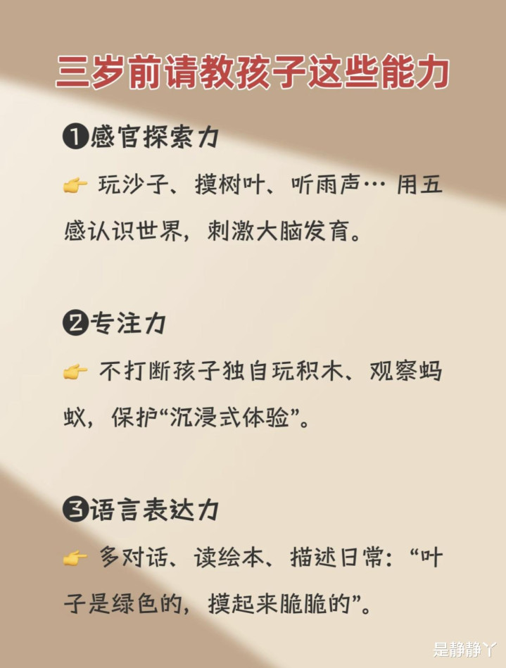 三岁前的孩子不需要背诗认字,他们需要触摸、不雅察、倾听和感受。这些“基础”才能是将来学习、相宜社会的要道。当咱们放下慌乱,给孩子探索、尝试、犯错的空间,他们会成为有感知力、专注力、抒发力、心扉力、惩办问题力和自理力的“完好的东说念主”,这些才能将津润他们一世的成长。