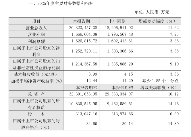 2025年第一季度,公司净利润30.82亿元,同比大幅着落25.87%;上半年净利润61.23亿元,同比着落25.1%;第三季度开动,单季度净利润达成同比增长,将前三季度净利润跌幅收窄至17.45%