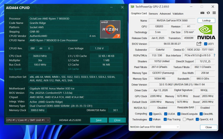 测试建树方面,CPU即是锐龙7 9850X3D,设立开启PBO ENABLE档,主板是技嘉X870E AORUS MASTER X3D ICE超等冰雕,为了勾搭游戏测试,显卡配备顶级的NVIDIA GeForce RTX 5080,操作系统是Windows 26H1最新版块,显卡初始是GameReady 596.21 WHQL最新版块。