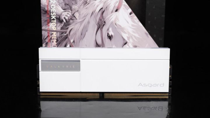 手上这款即是女武神二代DDR5 6000C28极地白版块,外不雅策画极为纯粹,除了质感温润的立体烤漆之外,还加入了非对称式的切割线和VALKYRIE铭牌,铭牌区域接纳了不一样的磨砂质感搞定,在字母上方还有条形ARGB灯带,右下方则是Asgard LOGO,实测含仅金手指高度为47mm傍边,妥妥属于高马甲内存。