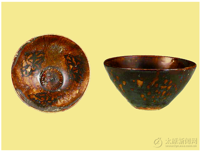 这件文物号称宋代工艺的巧念念典范,敞口舒展如莲,弧腹高昂浪费,卧足千里稳塌实;胎呈米白,质料略显疏松,通体施釉且釉面光亮莹润,尽显宋瓷时髦风骨。最妙的是器身表里的小巧景致,外壁黑黄交汇的玳瑁花纹当然晕染,如灵龟背甲般自然浑成,是吉州窑独步世界的窑变绝技;内壁则凝着三朵剪纸漏花纹样,线条勤俭灵动,在深色釉底烘托下宛若冰花绽于瓷心,恰似把新春窗花永恒嵌于盏中,虚实相生间尽是宋东谈主的生涯雅趣。